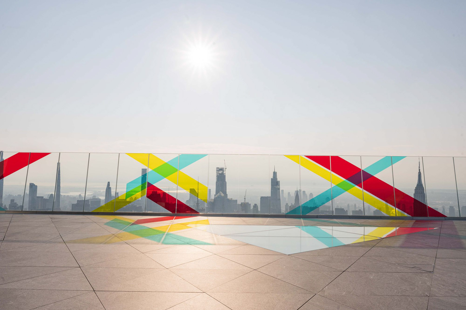 Edge is the tallest outdoor sky deck in the Western Hemisphere, rising 100 floors above Manhattan's streets. SHADES is a unique site-specific project that studies how humans perceive light and color using the entirety of New York City as the canvas, and it was created especially for the 2024 summer season.SHADES may be experienced simply as a large, colorful, summer playground. On the other hand, it might be seen as a deep invitation to reflect on what is occurring in the world around you.